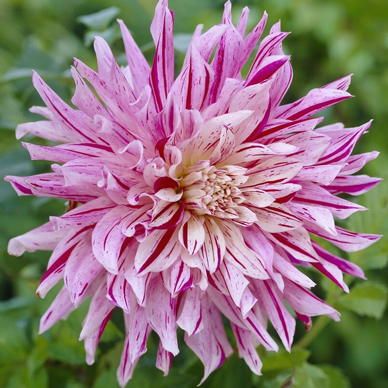 | Bloom Size: 8-10" Plant Height: 4-5' Form: Dinnerplate Informal Decorative Color: Raspberry splashes and speckles Listing is for 1 tuber |