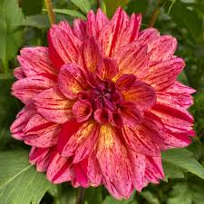 | Bloom Size: 5" Plant Height: 4' Form: Informal Decorative Color: Fuchsia pink with red streaks and yellow centers Listing is for 1 tuber |