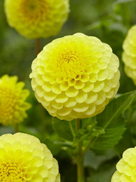 | "Bloom Size: 3" Plant Height: 3.5' Form: Pom Pom Color: Bright Yellow Listing is for 1 tuber" |