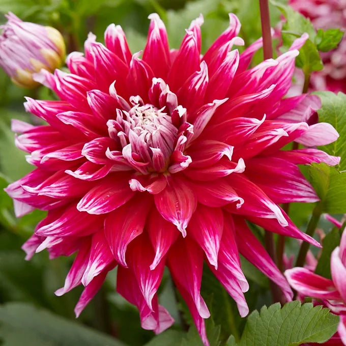 | "Bloom Size: 10" Plant Height: 4' Form: Dinnerplate Color: Wine Purple Listing is for 1 tuber" |