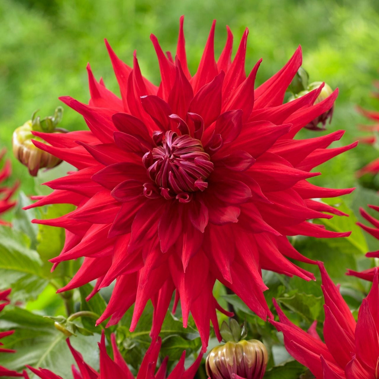 | Bloom Size: 10" Plant Height: 5' Form: Semi Cactus Color: Bright Red Listing is for 1 tuber |