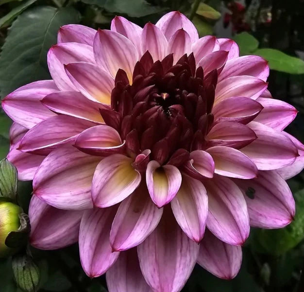 | Bloom Size: 4.5" Plant Height: 2.5-3' Form: Decorative Color: Pink-Burgundy Listing is for 1 tuber |